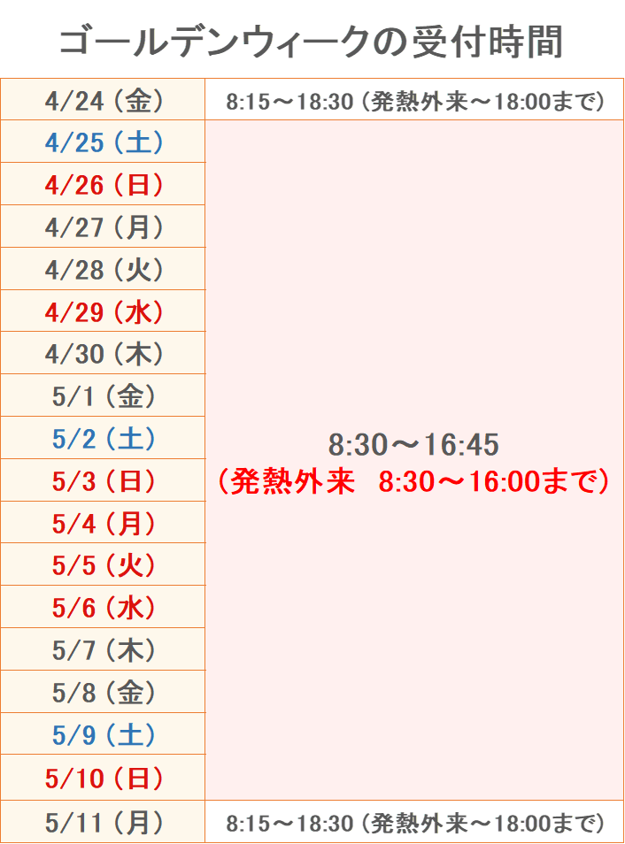 4月の予定 ■ ご予約・WEB問診について ● 土曜・日曜・祝日はWEB予約不可のため、直接ご来院ください。 ● 平日はWEB予約が可能です。予約なしでの受診も可能です。 ● WEB問診は土日祝日もご利用いただけます。 WEB問診に事前にご回答いただくことで、受付がスムーズになりますので、ぜひご活用ください。